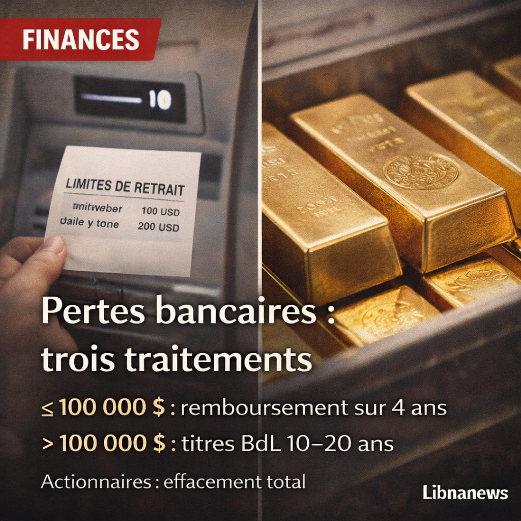 Le projet de loi de Nawaf Salam hiérarchise le traitement des pertes bancaires : remboursements en espèces sur quatre ans pour les dépôts sous 100 000 dollars, titres BdL sur 10 à 20 ans pour les montants supérieurs, et effacement total des actionnaires. L’or de la BdL divise.