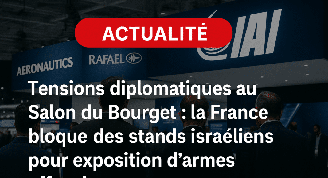 Lundi matin, alors que s’ouvrait le prestigieux Salon international de l’aéronautique et de l’espace au Bourget, en région parisienne, cinq entreprises israéliennes du secteur de l’armement ont vu l’accès à leurs stands brutalement interdit par décision du gouvernement français. Des bâches noires de plusieurs mètres de haut ont été installées, dissimulant totalement les expositions d’Israel Aerospace Industries (IAI), Rafael, Elbit, Uvision et Aeronautics. Cette mesure, inédite, visait spécifiquement des équipements qualifiés « d’armes offensives » potentiellement utilisées dans le conflit à Gaza.