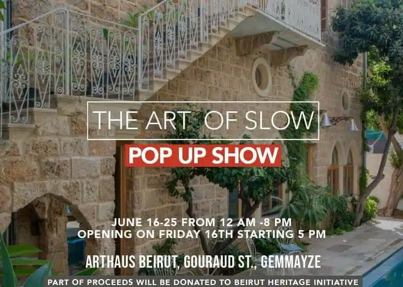 Le Pop up Show ‘THE ART OF SLOW’ se tiendra du 16 au 25 juin de 12h à 20h au ARTHAUS, Gemmayze, Beyrouth.