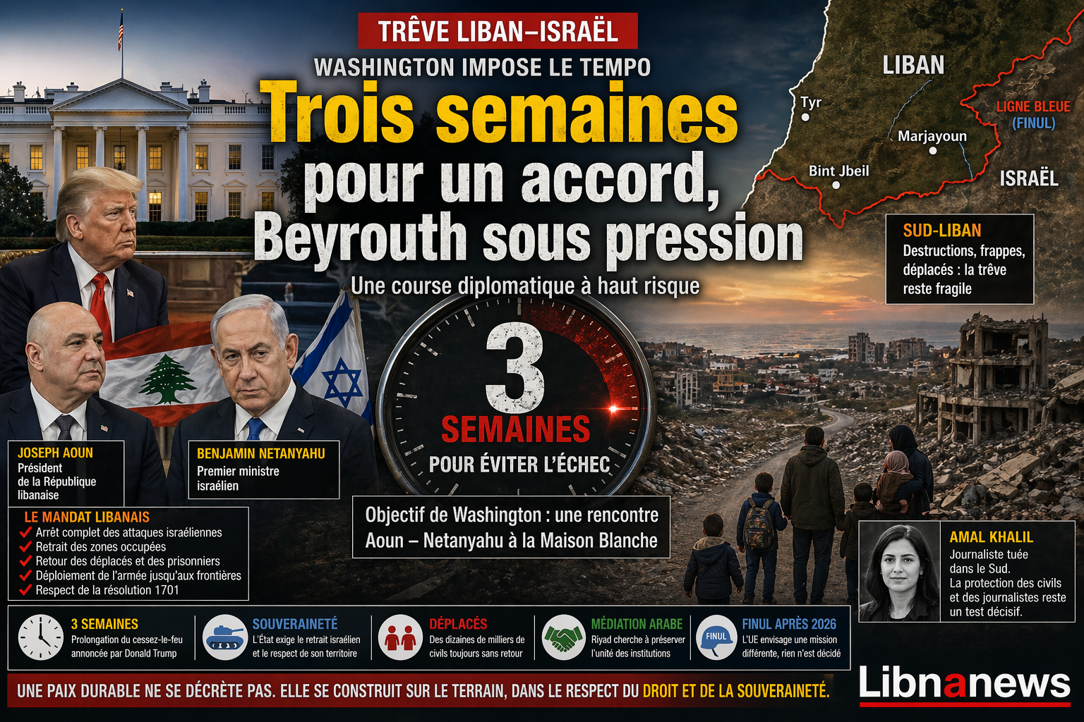 La période de trois semaines ne sera donc pas seulement un test pour Washington. Elle sera un test pour l’État libanais. Elle dira si les institutions peuvent défendre une position commune. Elle dira si la diplomatie peut produire une baisse réelle de la violence. Elle dira si la trêve peut passer du communiqué au terrain. Elle dira surtout si le Liban peut négocier sans perdre le contrôle de son propre mandat.