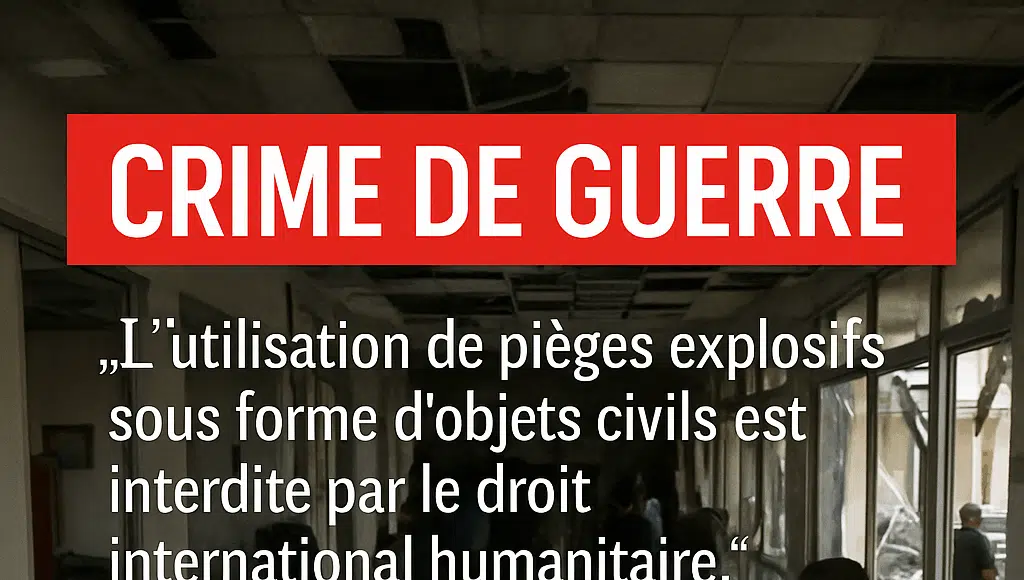 Les autorités libanaises et des experts internationaux ont unanimement qualifié ces attaques de crime de guerre en raison de leur nature indiscriminée et de la violation des conventions de Genève. Le Haut-Commissariat des Nations unies aux droits de l’homme (HCDH), dans un communiqué du 19 septembre 2024, a condamné les manipulations des pagers et radios comme des « violations terrifiantes » du droit international, soulignant que « de telles attaques pourraient constituer des crimes de guerre de meurtre, d’attaque contre des civils, et de lancement d’attaques indiscriminées, en plus de violer le droit à la vie ». Les experts de l’ONU ont insisté sur le fait que « les attaques violent le droit humain à la vie, sans aucune indication que les victimes représentaient une menace létale imminente pour quiconque au moment des faits ».