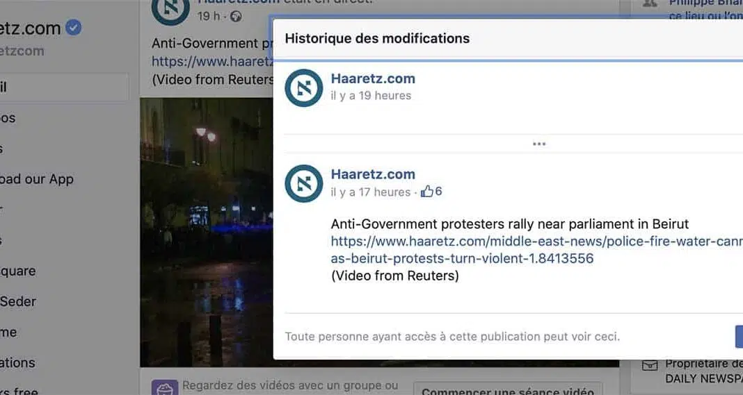 Les mentions sur Facebook ont depuis été modifiées par le journal israélien et attribuées à l’agence de presse Reuters.