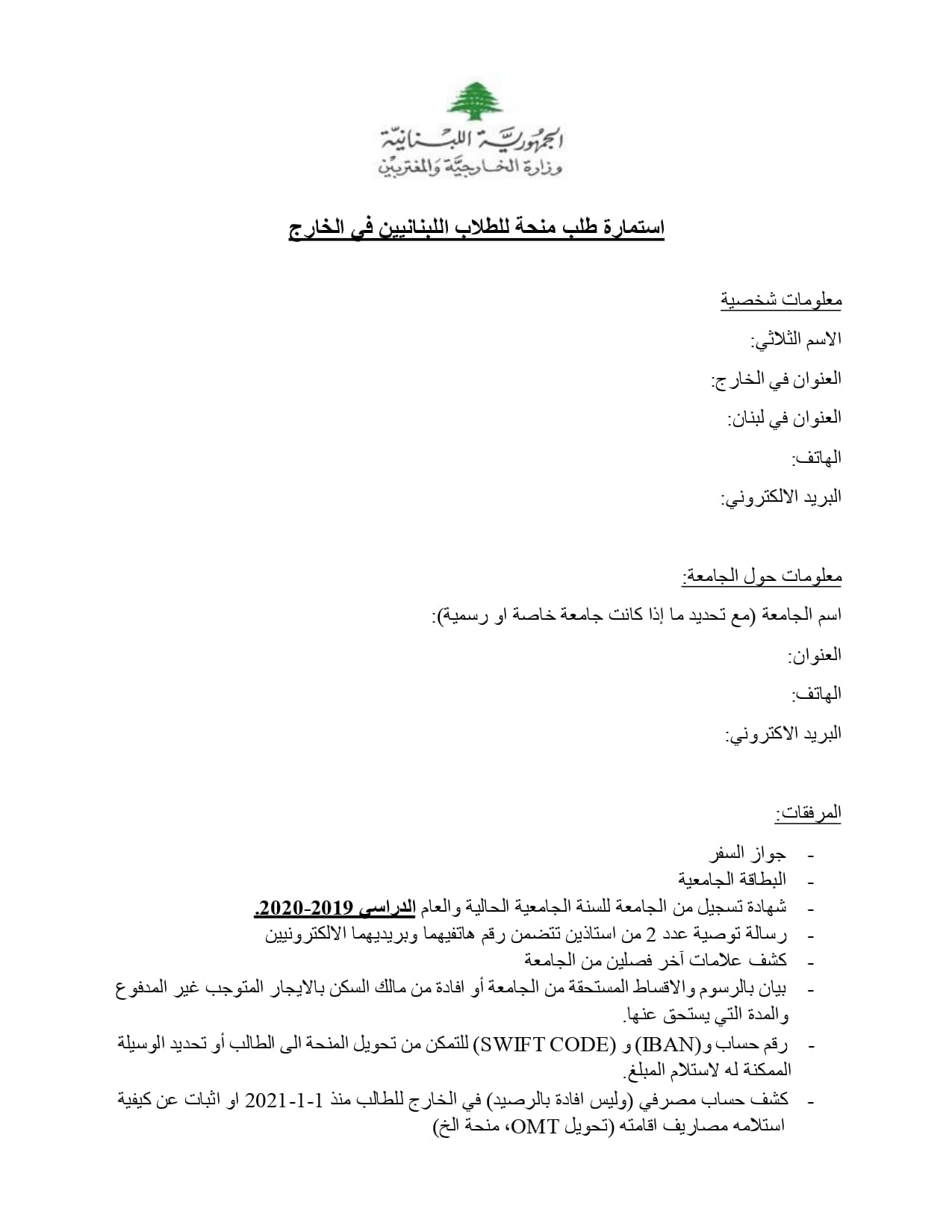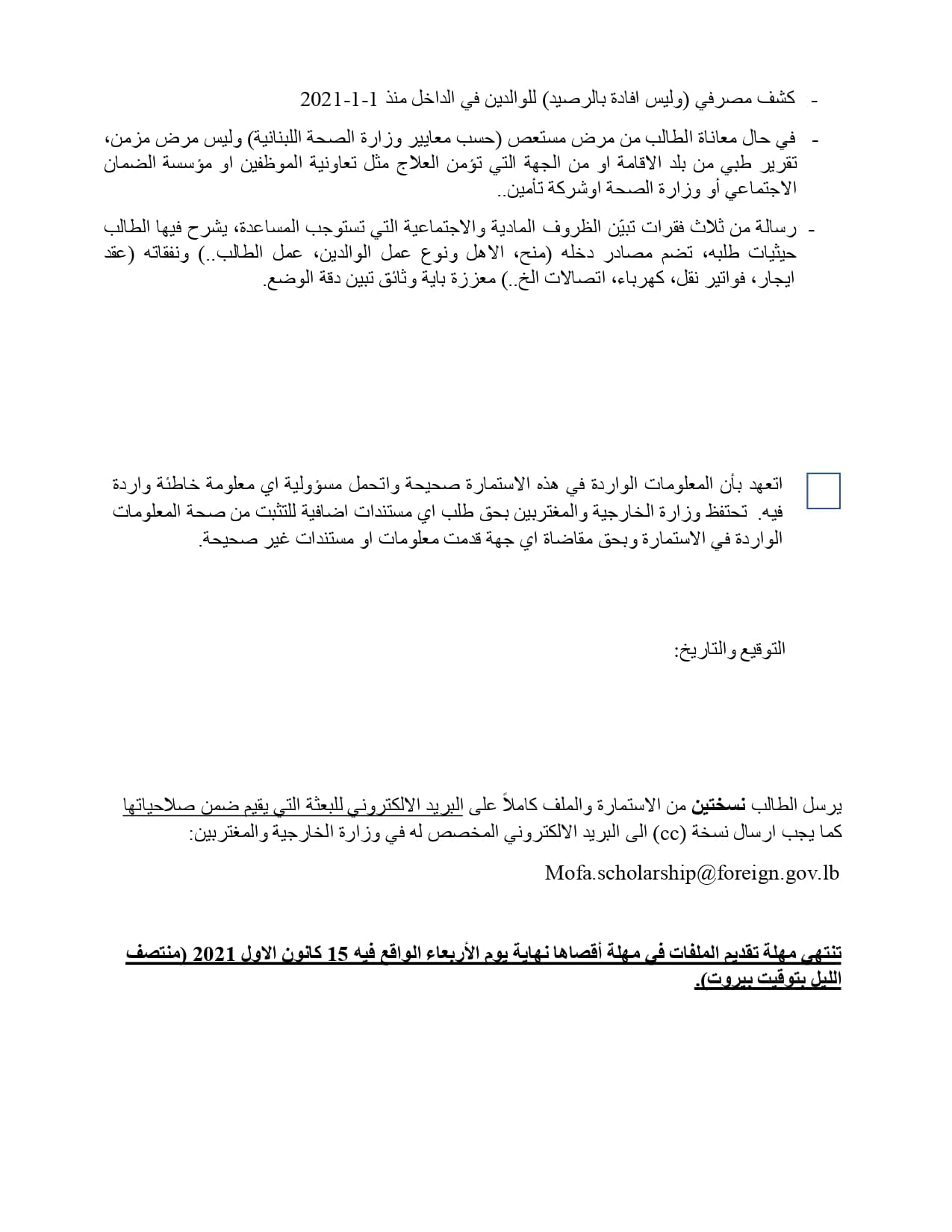 en cc au Ministère des Affaires étrangères et des Émigrés :mofa.scholarship@foreign.gov.lb