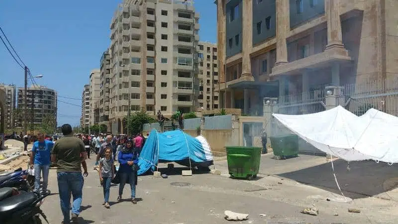 Selon une dépêche de l’Agence Nationale d’Information, les manifestants ont coupé les routes menant au Palais de Justice provoquant l’intervention des Forces de Sécurité Intérieure et de l’Armée Libanaise. Ils ont alors mis le feu à ces poubelles et fermé les parkings des juges et des avocats en y installant une tente et scandant des slogans pour la révolution, contre la corruption et la dégradation de la valeur de la livre libanaise face au dollar.