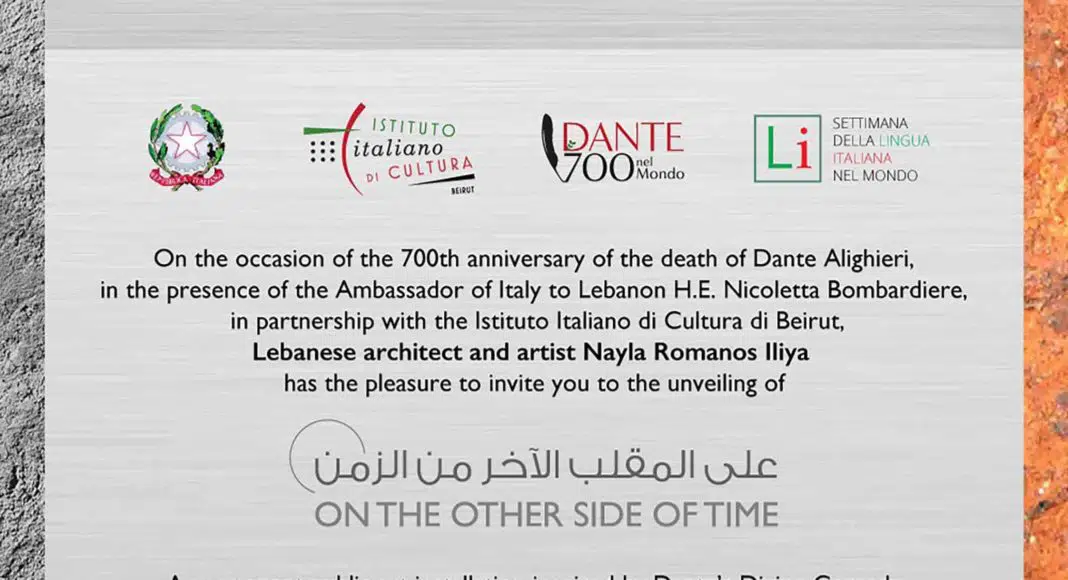 | On the occasion of the 700th anniversary of the death of Dante Alighieri, in the presence of the Ambassador of Italy to Lebanon H.E. Nicoletta Bombardiere, in partnership with the Istituto Italiano di Cultura di Beirut, Lebanese architect and artist Nayla Romanos Iliya has the pleasure to invite you to the unveiling of |