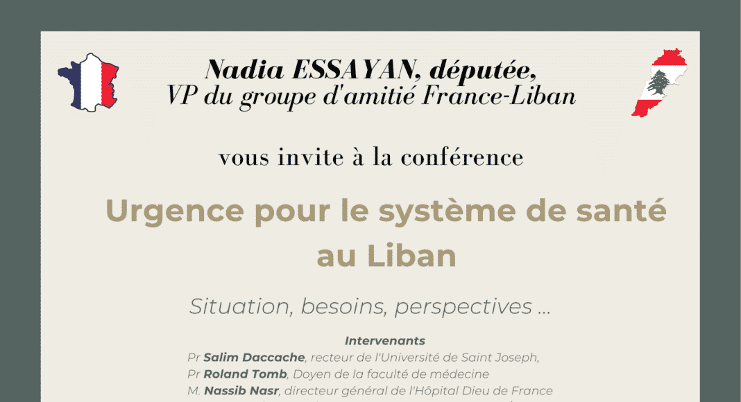 Sur invitation de la députée française, Mme Nadia Essayan, vice-présidente du groupe amitié France-Liban à l’Assemblée Nationale, une conférence aura lieu, le 6 décembre 2021, à17h, à Paris.