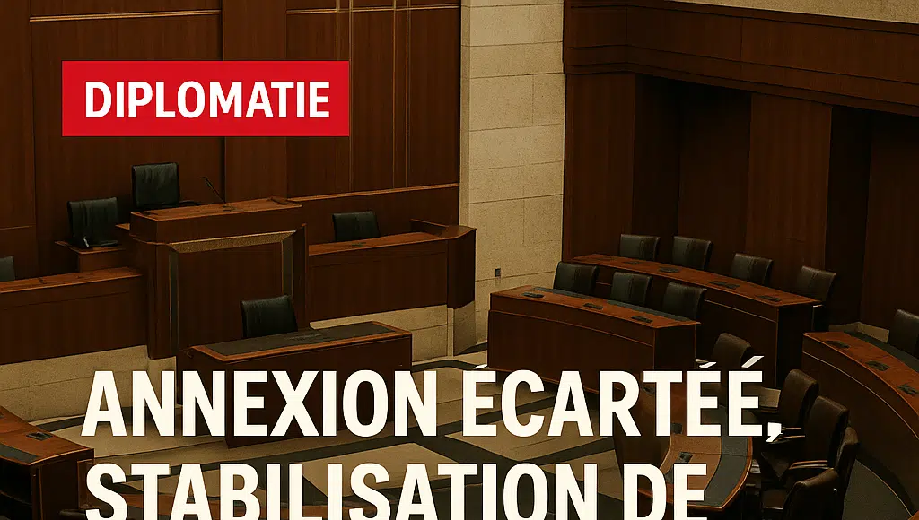 Le texte d’annexion n’a passé qu’une étape préliminaire, avec un scrutin de 25 voix contre 24, d’après les éléments transmis. L’arithmétique dit la fragilité. La coalition peut retarder, enterrer ou recadrer. Le cadre parlementaire israélien prévoit plusieurs lectures. L’incertitude demeure sur la capacité d’obtenir une majorité dans une Knesset à 120 sièges. Le symbole, pourtant, pèse davantage que le droit positif du moment. La séquence interfère avec un calendrier diplomatique chargé et une fenêtre de relance humanitaire étroite. Le bureau de Benjamin Netanyahu a insisté sur le caractère perturbateur du vote au cœur de la visite américaine. Le pouvoir exécutif israélien cherche à conserver une marge tactique. Il teste des voies procédurales pour éviter une rupture ouverte avec ses partenaires, tout en ménageant une base politique hétérogène.